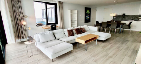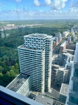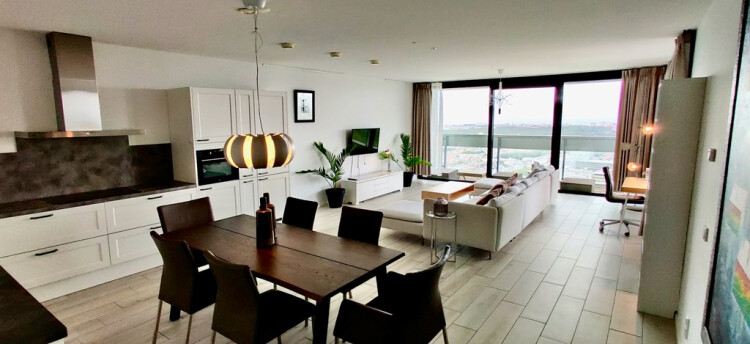 Unique penthouse apartment with fantastic balcony and terrace in the New Babylon building. This 2 bedroom apartment and one study room will come fully furnished and turn-key, with brand new design furniture. Located on the 38th floor with breathtaking views over The Hague and the sea. This state of the art apartment with floor heating and modern bathroom and kitchen is approximately 107m2. The coveted and desired New Babylon building is located next to Central Station and within walking distance of the center of The Hague. Also roads to the A12 and A4. The apartment will come with carefully selected designer furniture.