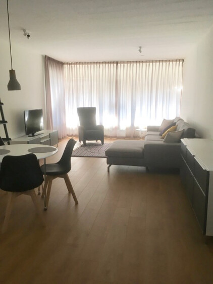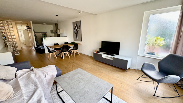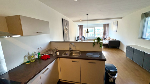 Shared main entrance with elevator to the 4th floor. Entrance to the apartment with a hallway and doors to all the rooms. Spacious and bright living room with doors to the balcony. Tastefully decorated and furnished. Open kitchen with bar and appliances such as dishwasher, oven, microwave, sink, freezer / fridge, induction stove and ample storage space. Master bedroom with big windows, a wardrobe and comfortable double bed. The 2nd bedroom can be used as a study or home office or sleeping room. Bathroom with walk-in shower, towel radiator and sink. Seperate toilet with faucet. A washing machien / dryer combination is available. Centrally heated and laminate flooring throughout the apartment. Fully double glazed.