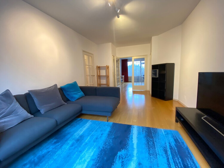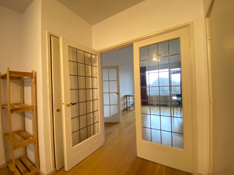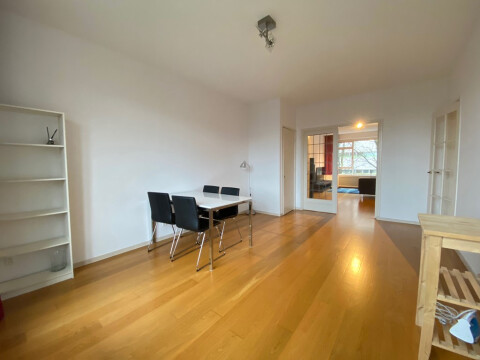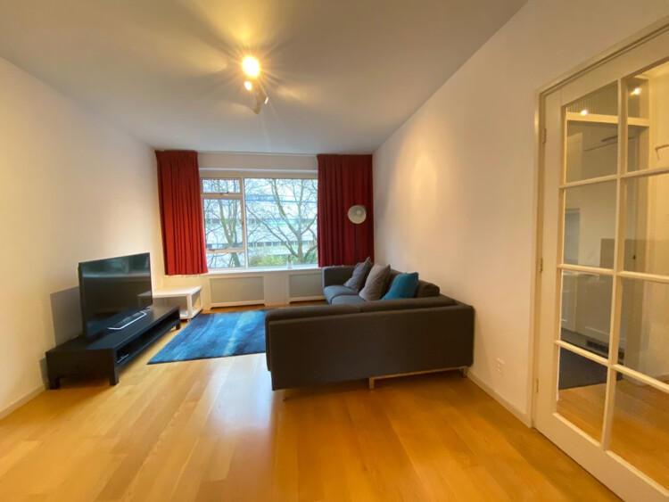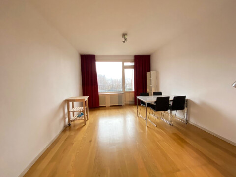 Semi gemeubileerd appartement met ruime woonkamer (voor en achter), 1 slaapkamer, 2 balkons en aparte berging. Optie tot 2e ruime slaapkamer.