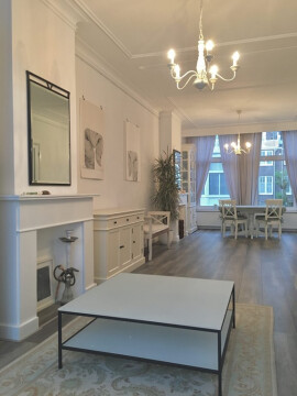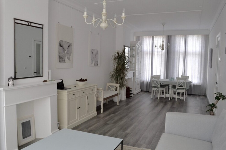 Bright and well-designed furnished 2-bedroom apartment with balcony. The apartment features characteristic ceiling elements and a fire place, laminate flooring and double glazed windows throughout. Conveniently situated in a great neighbourhood of The Hague on the first floor of a well-maintained apartment building. This home is perfect for a couple or a single professional. 10 min from the city centre. Two blocks away from the lively Theresiastraat, four supermarkets, multiple local grocery stores, restaurants and cafes, post office shops, beauty parlours and a gym, all within walking distance.