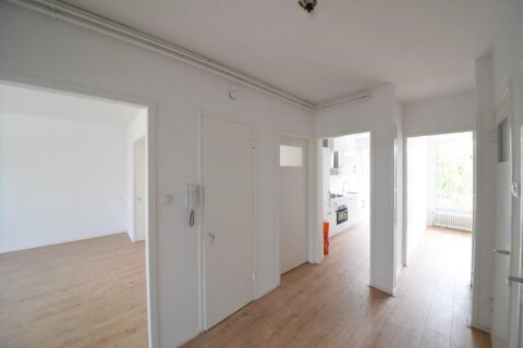 Entree via centraal trappenhuis, naar 3e verdieping. Ruime overloop naar lichte woon- en eetkamer (en suite met originele schuifseparatie), 2 slaapkamers, toilet en nieuwe keuken met alle inbouwapparatuur en toegang naar zonnig balkon. 4e verdieping: 2 zeer ruime slaapkamers, luxe badkamer met ligbad en inloopdouche.