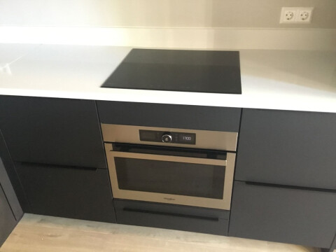Stairs to first floor. Spacious and bright living room. Open plan, design kitchen with built-in appliances including dishwasher, fridge/freezer, induction stove, oven and ample storage space. Two good sized bedrooms. Luxurious bathroom featuring a walk-in shower, sink with storage drawers, mirror and towel radiator. Separate toilet with sink. Sunny balcony. The apartment has been fully renovated with attention to design and comfortability, fitted with wood-style flooring throughout, double glazed windows and brand new furniture.