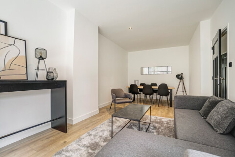Entrance at street level. Spacious and bright living room. New, design kitchen with built-in appliances. Three good sized bedrooms. Luxurious bathroom. Separate toilet with fountain. Sunny garden with design shed. The apartment has been fully renovated with attention to design and comfortability, fitted with wooden flooring throughout, steel industrial doors, double glazed windows and brand new furniture.