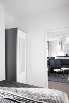 Via de hal komt u het appartement binnen naar de open woonkamer met open lichte keuken.