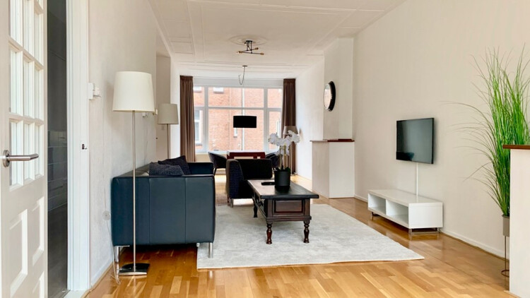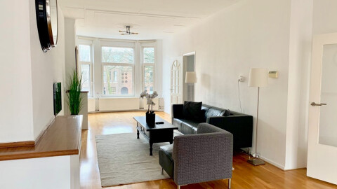 Spacious and sunny 2-bedroom fully furnished home with balcony at the Valkenboskade. Situated on the first floor of a well-maintained apartment building and with a living space of approx. 110m2. With an exceptional spacious living room, separate washing room and walk-in closet this could be a great home for couples or small families who wish to live in a family friendly and green area near the city centre of The Hague. Living at Valkenboskade means living close to the Fahrenheitstraat with it's shops and restaurants, near the beach but also near to the city centre of The Hague.