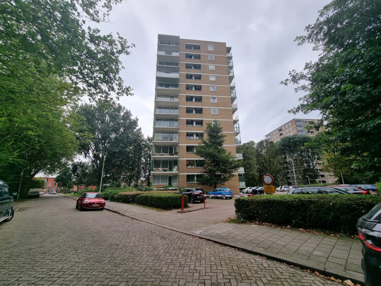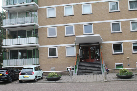Indeling: gesloten gemeenschappelijk ingang met brievenbussen en bellentableau. Lift/trap naar 5e etage. Entree appartement, lange ruime gang welke toegang bied tot alle vertrekken. Slaapkamer van ca.: 2.8 x 4.0, studeer/logeerkamer van ca.: 2.3 x 4.0, lichte woonkamer op de hoek van ca.: 4.8 x 5.6 met 2 inbouwkasten en toegang tot ruim zonnig balkon van ca.: 1.4 x 4.5 met vrij uitzicht over veel groen. Aparte moderne keuken van ca.: 4.4 x 2.1 voorzien van (inbouw)apparatuur (kookplaat, afzuigkap, vaatwasser, magnetron, oven, koelkast en aparte vriezer). Apart (zweef)toilet van ca.: 0.9 x 1.2 met fontein, badkamer van ca.: 1.7 x 2.2 met aparte douche, wastafel met meubel en wasmachine. Bergruimte van ca.: 1.3 x 2.2 met kastenwand en garderobe haken, meters en boiler. Woning is volledig gemeubileerd zoals op de foto's, en geheel recentelijk opgefrist en is zo te betrekken.