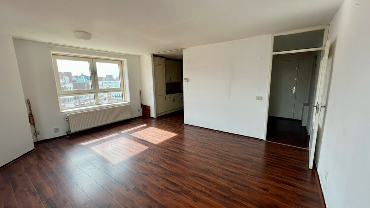 Entrance from the street to hallway with elevator and stairs. Elevator to the fourth floor. Entrance to hallway in the apartment which leads to the living room with its windows overlooking the coastal skyline and sea of Scheveningen. Semi-open kitchen with fridge / freezer, oven and 4-pit stove. Small storage next to the kitchen with washing machine / dryer. Spacious master bedroom with access to balcony. Modern bathroom with bath / shower, sink and towel radiator and toilet. Laminate flooring. Double glazed with a central heating system.
