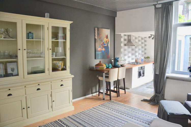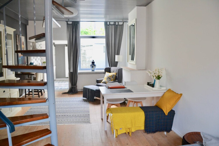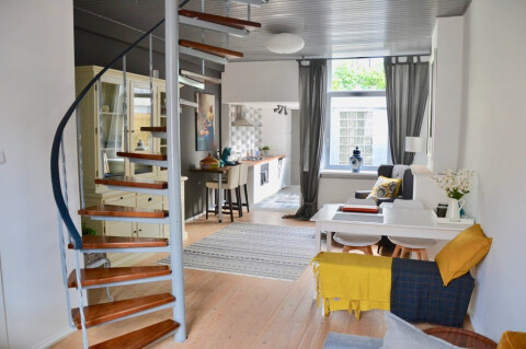 A modern loft apartment with patio garden and contemporary bathroom and kitchen. The apartment of ca. 65m2 is fitted with design furniture and is located in the lively city-centre of The Hague. All comforts are met in this design city-style apartment, located in the popular Zeeheldenkwartier.