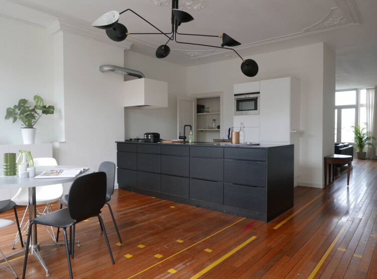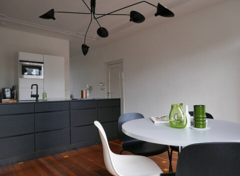 Renovated and spacious two bedroom apartment consisting out of four rooms and a terrace. Located in a monumental building in the stately and historic Duinoord/Statenkwartier. Modern and renovated, high design apartment. Fully fitted with design elements including a magnificent kitchen island with waterfall counter top and built-in cupboard of 3m high combined with an extraordinary ornamental ceiling from 1895.