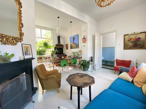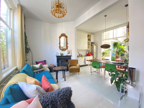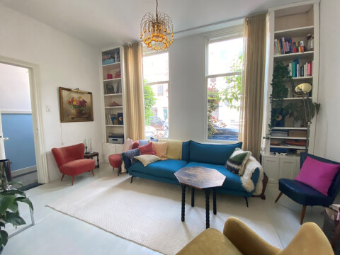 Warm karakteristiek en gemeubileerde woning (ca. 93 m2) met tuin en dakterras nabij winkelstraten Weimarstraat en Fahrenheitstraat.