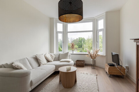 Fully renovated and renewed furnished turn-key apartment with 2 spacious bedrooms and a terrace. This apartment is bright and spacious and with a sunny terrace in the green Vruchtenbuurt, minutes away from the Kijkduin beach. Brand new and stylish furniture make this a modern living space. The kitchen is fully fitted and equipped with a lovely kitchen island and stone counter top. This means living close to the International School as well as Laan van Meerdervoort with excellent tram connections. Shops and supermarkets can be found at Thorbeckestraat.