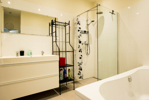 En dan de badkamer! Deze mooie grote badkamer is voorzien van een ligbad, douchecabine en dubbele wastafel. En, het heeft ook een designradiator waardoor de baddoeken lekker verwarmd klaarliggen. Er is meer dan genoeg loopruimte in de badkamer. Kortom, een zeer prettige badkamer! De toilet is toegankelijk vanuit de hal en dat geldt ook voor de wasruimte.
