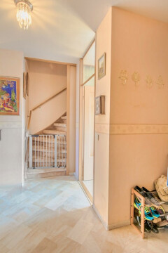 Entrance from the street into the closed entrance hall with mailboxes and doorbells. Here you can take the stairs to the 3rd floor. Entrance to the apartment into the the hallway which gives acces to the living room, kitchen and separate toilet. The living room is divided in a seating area and dining area. The living room is fully furnished and has a door to the spacious balcony. The kitchen is equipped with appliances such as freezer/fridge, 5-burner gas stove, oven, microwave and ample storage space. By taking the stairs in the hallway you arrive at the second floor where the four bedrooms are located, as well as the bathroom. Master bedroom with a comfortable double and three smaller bedrooms. The bathroom has a shower, sink, second toilet and towel raditor.