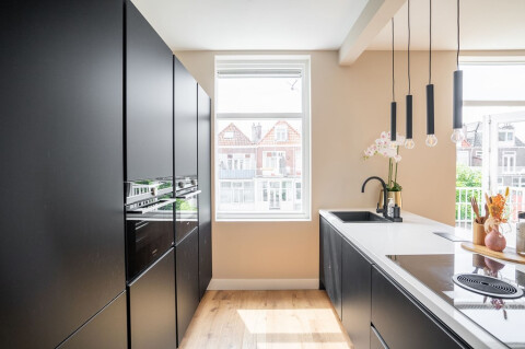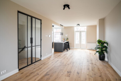 Luxuriously renovated 3 bedroom apartment with balcony, located in the popular Zeeheldenkwartier. The apartment is fitted over two floors, with spacious south-facing balcony! This luxury turnkey apartment features a spacious living room with a luxurious open kitchen with built-in Siemens appliances, 3 bedrooms and a luxurious bathroom, double-glazed windows, glass/steel doors, brand new furnishing and high level finishings. This impressive, well-renovated house offers all the luxury and comfort of today and is located in the most attractive part of the Regentessekwatier.