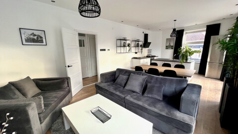 Entrance with stairs to the second floor. Six bright bedrooms and nice, sunny balcony. Luxurious bathroom with walk-in shower, sink with storage space, mirror, towel radiator and toilet. Spacious and bright living room with open kitchen with built-in appliances. Front balcony. Separate toilet with fountain. This city home has been fully renovated with attention to design and comfortability, fitted with modern flooring throughout, steel industrial doors, double glazed windows and brand new furniture.