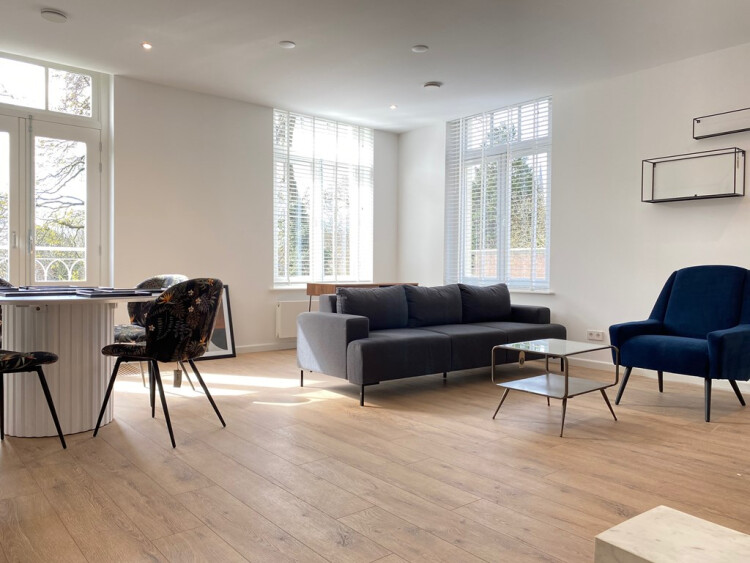 Luxe, volledig gerenoveerd en gemeubileerd 2-kamer appartement in een prachtig monumentaal pand in hartje Centrum (ca. 74 m2). Gesitueerd aan de populaire winkelstraat Noordeinde waar ook het werkpaleis van de koning staat. Tevens uitzicht op de Paleistuinen vanuit de woonkamer. Het compleet gerenoveerde appartement bevindt zich op de eerste etage. De unieke woning straalt sfeer, warmte en luxe uit. De woonkamer heeft een Juliette balkon. De open layout van de etage met de luxe keuken en inbouwapparatuur maakt het tot 1 prachtig geheel. Het appartement telt 1 slaapkamer met aangrenzende luxe badkamer met inloopdouche. Er is gebruik gemaakt van warme, neutrale kleuren.