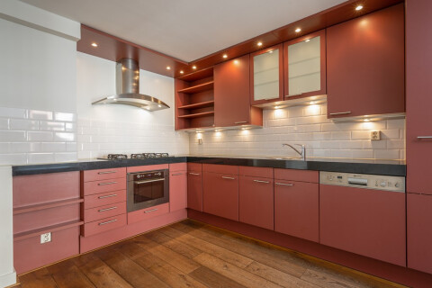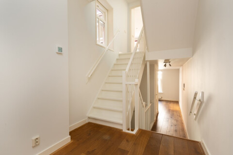 De indeling van het appartement is even aantrekkelijk als functioneel. Op de eerste etage strekt de woon-/eetkamer zich uit over de volledige breedte, met grote ramen die uitkijken over de charmante Oude Molstraat. De moderne open woonkeuken, voorzien van hoogwaardige inbouwapparatuur, nodigt uit tot culinaire creativiteit.
