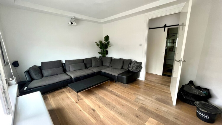 Hallway with doors to all the rooms. Spacious living area with comfortable sofa and home cinema system (as a bonus a PS5 will be available as well for the gamers). Bathroom with walk-in shower, sink, storage space and a radiator. Separate toilet with faucet.