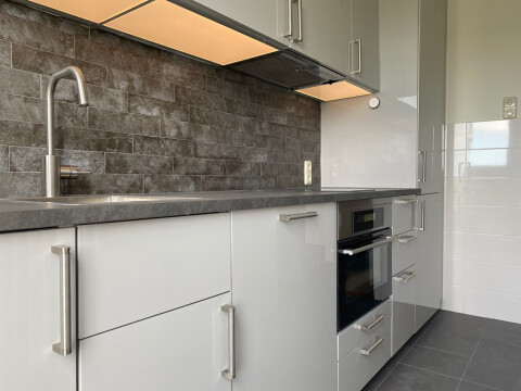- keuken voorzien van koel-/vriescombinatie, vaatwasser, combi oven/magnetron en inductiekookplaat.