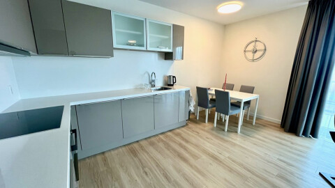 Two bedrooms, a spacious master bedroom and a guest, children room which can also be used as a home office. Bathroom with walk-in shower, a separate bath, 2 sinks and a towel radiator. Seperate toilet with faucet. Floor heating through-out the apartment which can be regulated per room. Centrally heated and well ventilated.