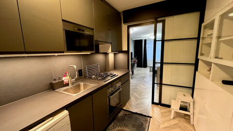 Closed entrance with stairs to the first floor. Entrance to the apartment into a small hallway with space to hang your coat and a cupboard for shoes etc. Entrance to the sunny living room with beautiful flooring and carefully selected furniture. Steel doors to the kitchen with appliances such as a dishwasher, freezer / fridge, gas-stove, oven and microwave. Cutlery, pans, pots etc. will be provided.
