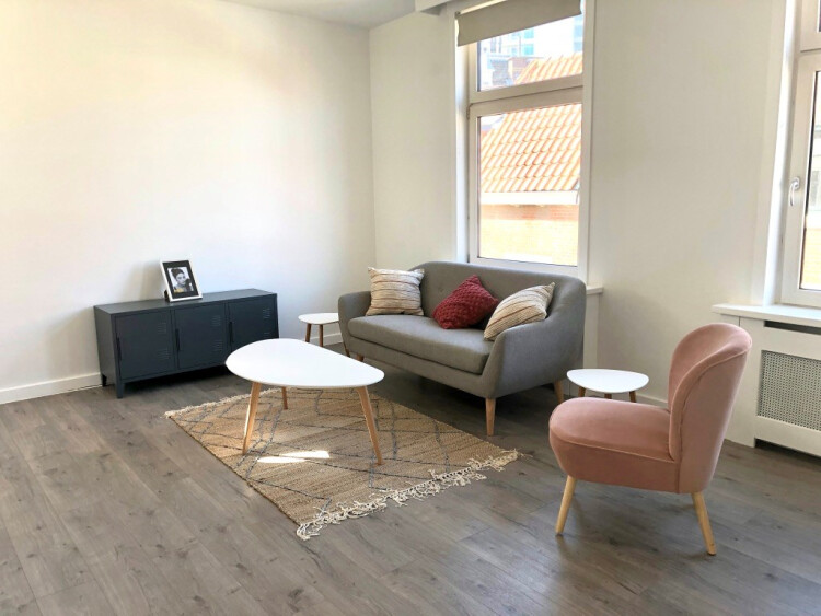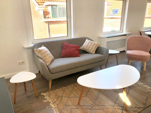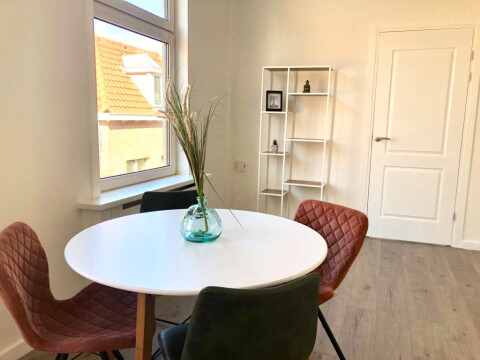 Spacious and bright fully renovated beach apartment located nearby the harbour and the beach of Scheveningen. The 1st floor loft, apartment consists of a spacious living room, open kitchen, two large bedrooms and bathroom. There is laminate flooring throughout and double glazed windows.