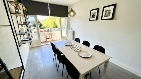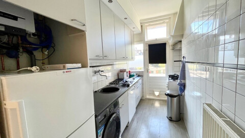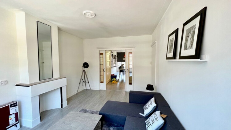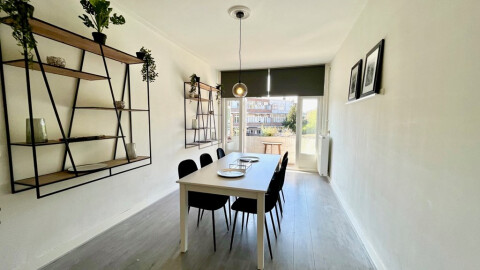 Renovated and newly furnished 2-bedroom home with balcony at the Okkernootstraat. This home of almost 90m2 has a spacious living room divided in a seating area and large dining room. Situated on the first floor of a well-maintained apartment building. A modern kitchen and bathroom with shower and bath. Living at Okkernootstraat means living near the beach, International School of The Hague and the cozy Appelstraat shopping street. Public transport connections can be found right outside of the apartment that bring you to the city centre in 15 minutes.