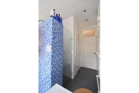 •moderne en ruime doucheruimte met wastafel (wit/antraciet betegeld), wasmachineaansluiting en grote vaste kast * moderne keuken met granieten blad en ingebouwde combi magnetron / oven, kookplaat, afzuigschouw, vaatwasmachine (alles van Whirlpool) en met toegang tot een kleine balkon