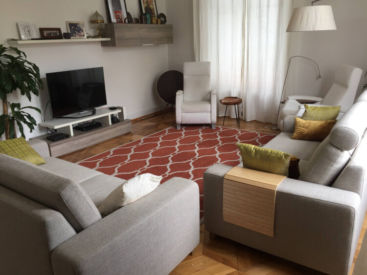 The apartment is completely furnished, bright and stylish. (including flat-screen TV, induction hob, oven with microwave, large fridge freezer unit, washing machine, juicer, vacuum cleaner, kettle). In the basement is a large storage room 4sqm.