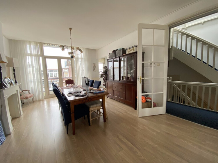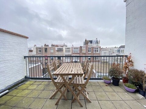 Dubbelbovenhuis (2e en 3e verdieping) met 3 slaapkamers, zonnig terras en balkon gelegen aan de populaire winkelstraat Frederik Hendriklaan in het Statenkwartier.