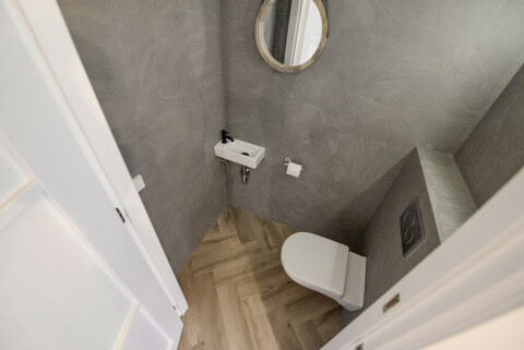 Entree via de begane grond, ruime hal met toilet, inbouwkast en wasruimte.