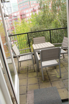 Slaapkamer 1 aan de voorzijde van 2.7 x 4.8 , badkamer van 2.7 x 2 met dubbele wastafel met meubel, douche, bad en designradiator, en wasmachine en droger. Slaapkamer 2 aan de achterzijde van 3.5 x 3.2 met toegang tot terras.