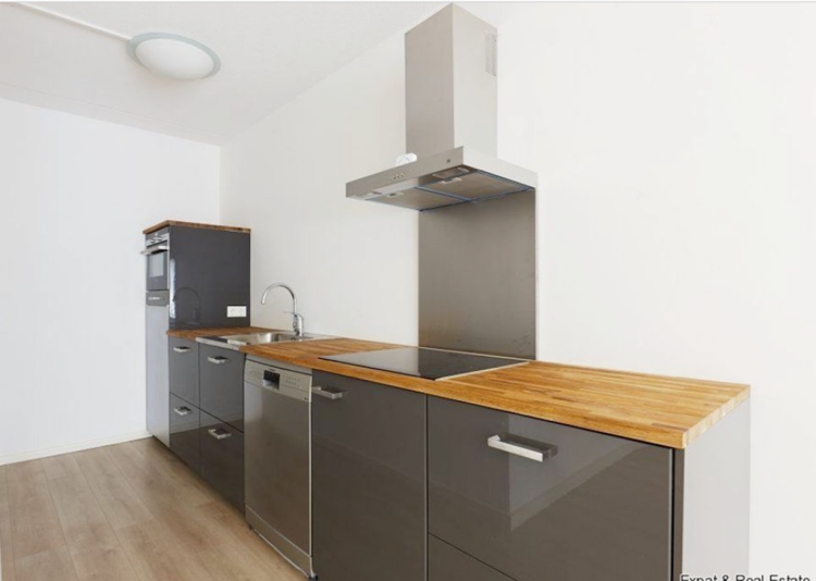 Entrance hall, closet, spacious toilet with hand basin. Cozy spacious living room with luxurious new open kitchen with dishwasher, refrigerator, freezer and induction cooker. 2 bedrooms. Luxurious new bathroom with bath, walk-in shower and double sink.