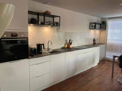 Turn-key and fully furnished apartment with 2 bedrooms and a nice terrace at Kepplerstraat. This apartment is approx. 90m2 and situated on the 3rd floor of a modern apartment building with elevator access and a separate storage in the basement. The building was built in the year 2000 and the apartment has an A-label energy rating. Excellent option for a working couple in The Hague that wishes to live close to the cozy Weimarstraat shopping street and near to public transport connections to the city centre and central station.