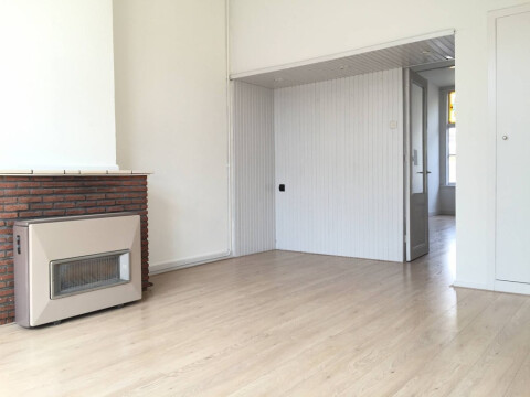Een gezamenlijk entree op de begane grond. Via de trap komt u bij de eerste etage met toegangsdeur tot appartement. De hal geeft toegang tot de zeer grote en lichte woonkamer En Suite. Deze ruimte heeft tevens een zijkamer, waardoor u op een speelse manier extra slaapruimte kan creëren. De woning heeft een aparte keuken met berging.