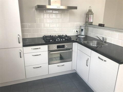 Entrée woning op de begane grond. De hal biedt toegang tot de ruime woonkamer. De woonkamer heeft vele raampartijen waardoor er een mooie lichte ruimte ontstaat. Er is een open keuken voorzien van diverse inbouwapparatuur, zoals koelkast, vriezer, vaatwasser, oven, gasfornuis en afzuigkap en voldoende kastruimte. Via de hal bereikt u de moderne badkamer voorzien van inloopdouche, wastafel, wasmachine en hangtoilet. Naast de badkamer bevind zich de slaapkamer met grote garderobekast. Dit moderne appartement is volledig gemeubileerd en is klaar om direct te betrekken.