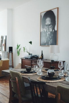 Het huis is erg licht en ruim (120m2) , en heeft verschillende authentieke details. Op de eerste verdieping vind je een grote woonkamer, met uitgebreide dinertafel, een heerlijke serre om een boek te lezen en volledig uitgeruste keuken. Daarnaast is er een ruime gang waar eventuele fietsen of kinderwagens gezet kunnen worden.