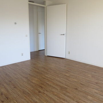 De ruime slaapkamer ligt naast de woonkamer me schuifdeur naar het balkon.
