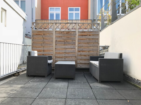 2 slaapkamers, een zéér lichte woonkamer en een terras gelegen op het noordoosten.