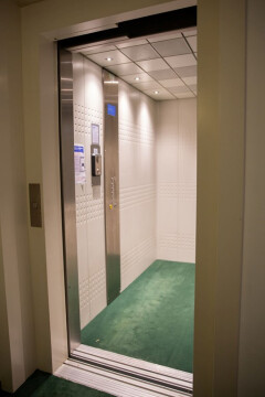 Bordestrap naar de luxe afgesloten gezamenlijke entree met brievenbussen en bellentableau op de bel-etage. Hal naar entree van de lift en trappenhuis die je naar de 3e etage brengen.