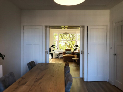 Fully renovated and furnished apartment with 3 bedrooms at Mient. This turn-key apartment is bright and spacious with brand new and stylish furniture, making this a modern living space. The design kitchen is fully fitted and equipped. Lovely living room with ensuite dining room. Living in the Vruchtenbuurt means living close to the International School as well as Laan van Meerdervoort with excellent tram connections. Shops and supermarkets can be found at Thorbeckestraat.