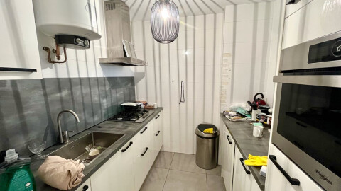 Hallway with doors to all rooms and storage space. Spacious living room with access to the balcony. Fully renovated kitchen with appliances such as a dishwasher, fridge / freezer and stove. Bedroom with comfortable bed and entrance to the renovated bathroom with sink and walk-in shower.