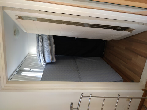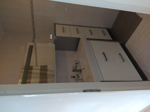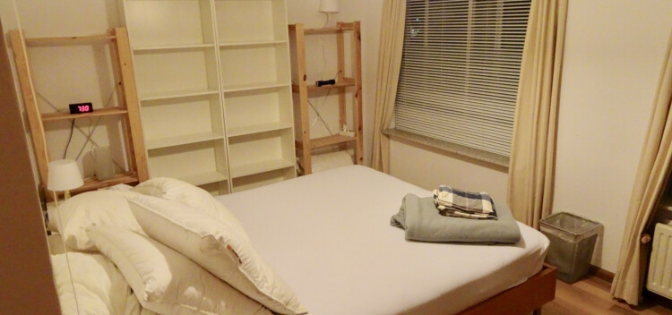 You enter this apartment on the first floor in a spacious hall. On your right, you have the entrance to the spacious bedroom with a connected small room, possibly a baby room, a walk-in closet or additional storage room.