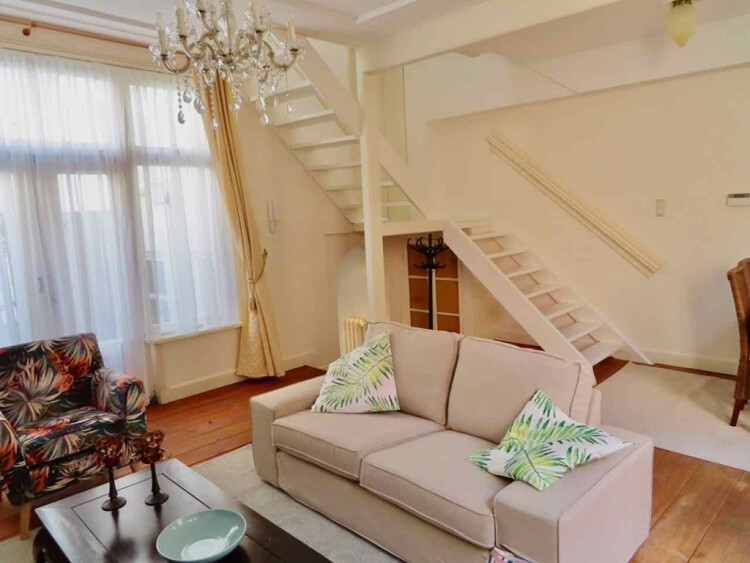 Two bedroom apartment in a beautiful Dutch townhouse with a fantastic garden. This is a nice and well furnished apartment with 2 bedrooms opposite de Royal Gardens and close to shops, restaurants and public transport. This apartment offers a rare occasion in the city center with a total living space of 95m².