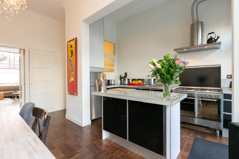 Luxury, short-term, apartment on the ground floor with a fantastic garden in the city centre. Modern, open kitchen with all appliances and luxurious bathroom with walk-in shower. Ideal location in the popular ‘Zeeheldenkwartier’ near many of the international embassies & institutions, one block away from the center of The Hague, public transport and several popular shopping streets right around the corner.